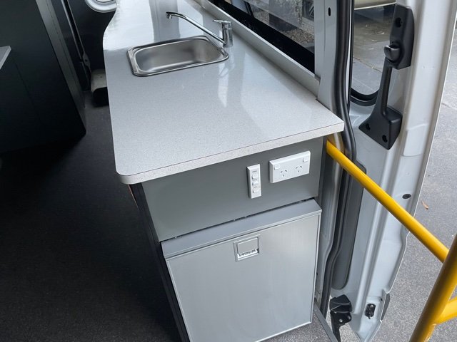 – Toilet, roof air, solar, plug in 240V, generator, fridge